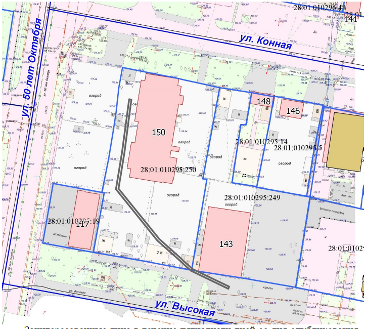 2. земельного участка с кадастровым номером 28:01:010295:249, расположенного по ул. Высокая, 143, в квартале 295;
